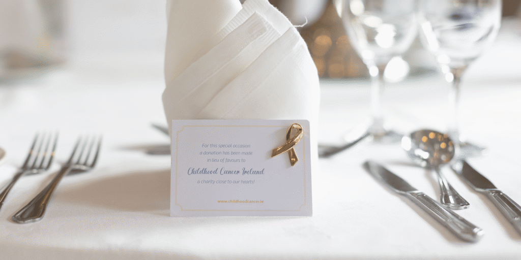 Your wedding day becomes a moment not only of generosity, but of understanding and solidarity. Alongside any donation to Childhood Cancer Ireland, your support helps provide vital emotional, practical, and financial services to families when they need them most.